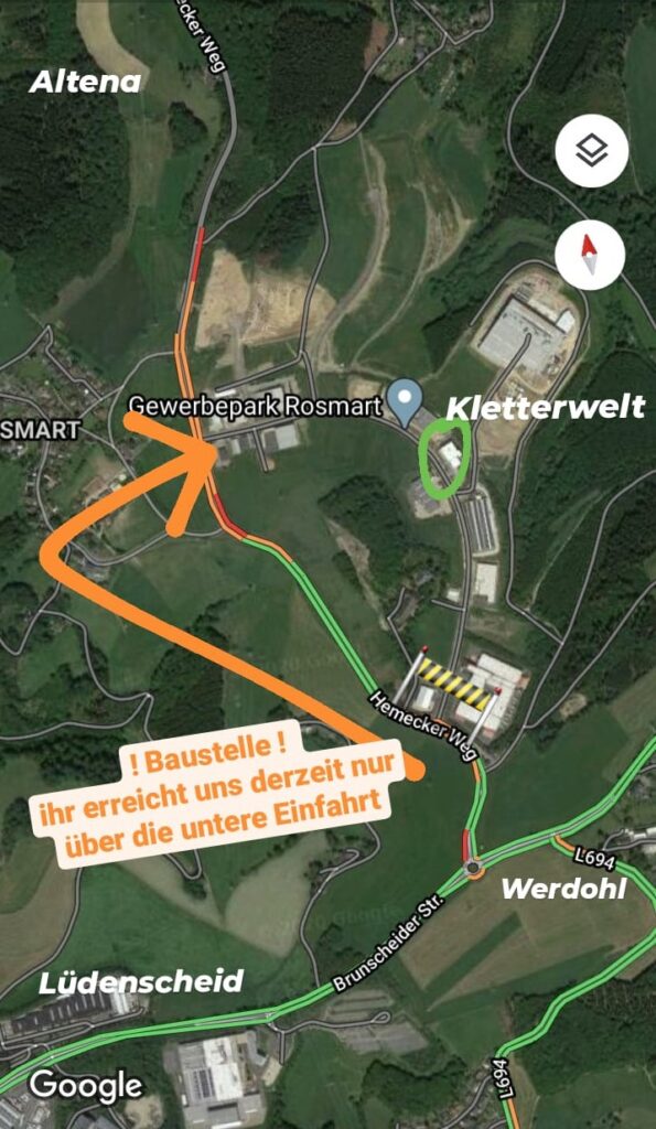 Liebe Kletter- und Boulderfreunde, seit heute Nachmittag sind wir nur noch über den unteren Zuweg zum Gewerbegebiet – siehe Foto – zu erreichen! Aufgrund von Straßenbaumaßnahmen wurde der obere Zuweg ins Gewerbegebiet heute für uns überraschenderweise gesperrt und am unteren Zuweg diverse „Durchfahrt nur für Anlieger“ und „Durchfahrt bis Baustelle frei“ – Schilder aufgestellt. Betrachtet […]