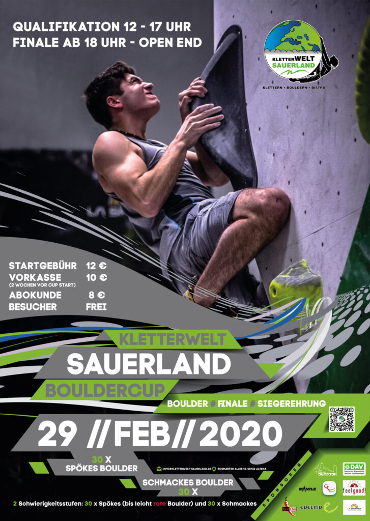 Wie ihr wisst findet am Samstag den 29.02.2020 unser Sauerland Bouldercup 2020 statt! Ab heute läuft der Vorverkauf, so dass ihr euch schon im Vorfeld euren Startplatz sichern könnt! 😊 Hier nochmal die Übersicht der Startgebühren: am Wettkampftag 12 EUR Vorverkauf 10 EUR Abokunden generell 8 EUR Besucher sind wie immer frei und gerne gesehen! […]
