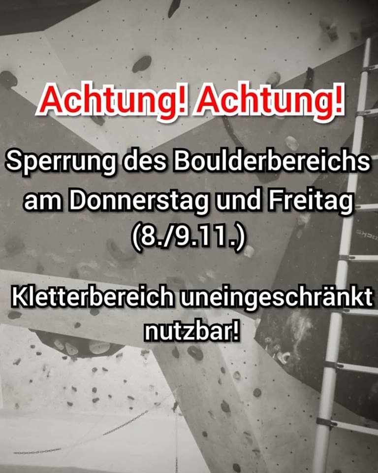Sperrung der Boulderhalle am 08. & 09.11.2018