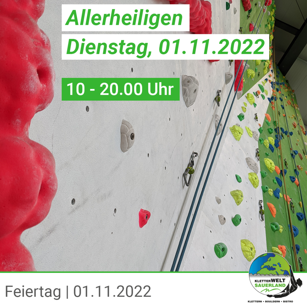 Am Dienstag, 01.11. (Allerheiligen) haben wir von 10 – 20.00 Uhr geöffnet! Verbringe einen sportlichen Feiertag bei uns, wir freuen uns auf dich 🙂